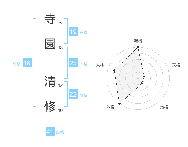 寺園 清修さんの外格は16画の5点!