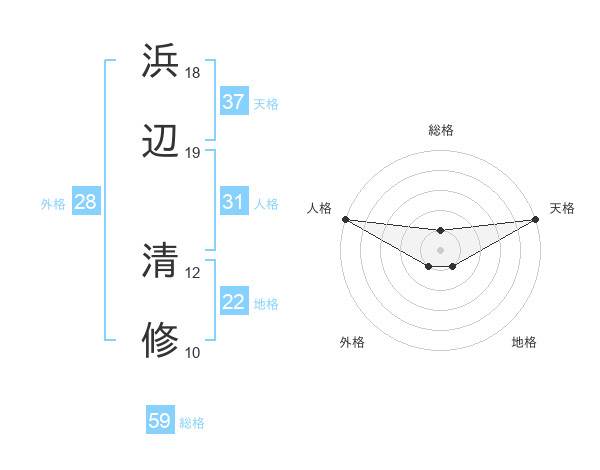 浜辺 清修さんを姓名の画数から五運を鑑定