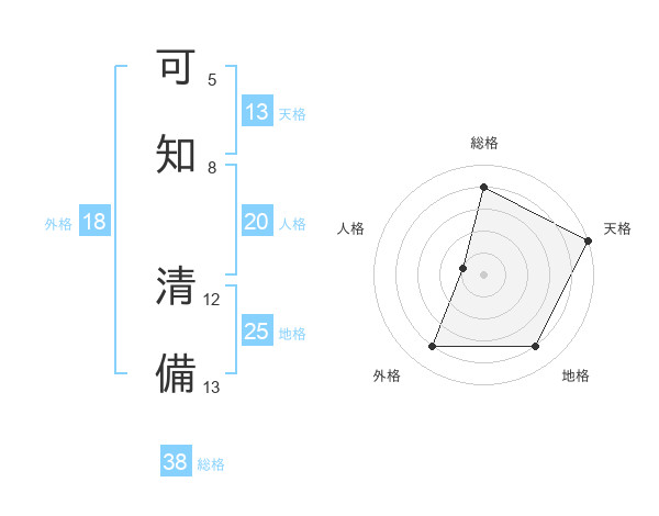 可知 清備さんの総格は38画の4点!