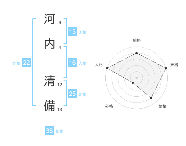 河内 清備さんの総格は38画の4点!