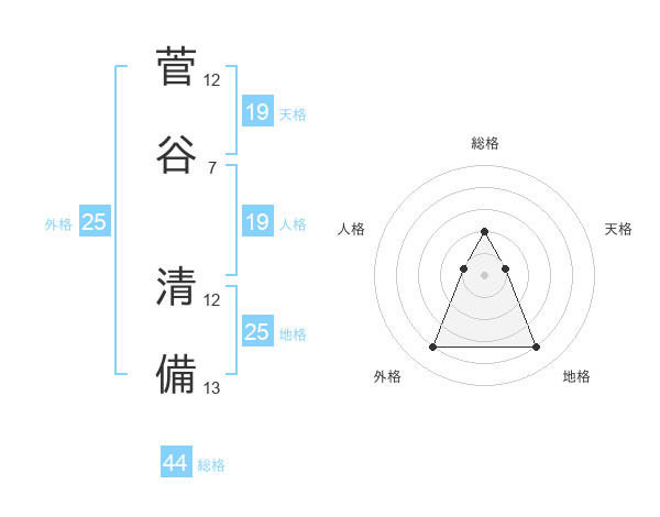 菅谷 清備さんの総格は44画の2点!