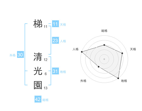 梯 清光園さんの地格は31画の5点!