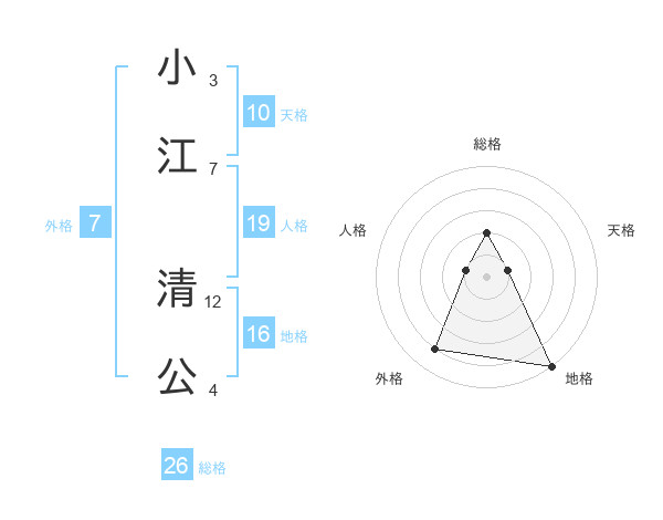 小江 清公さんの総格は26画の2点!