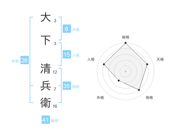 大下 清兵衛さんを姓名の画数から五運を鑑定