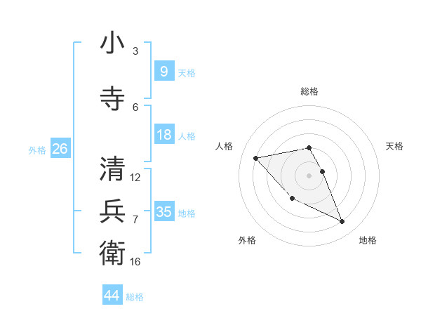 小寺 清兵衛さんを姓名の画数から五運を鑑定