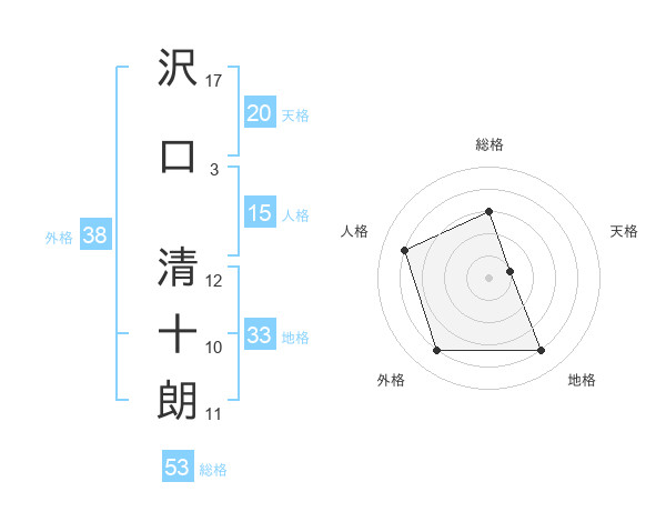 沢口 清十朗さんを姓名の画数から五運を鑑定