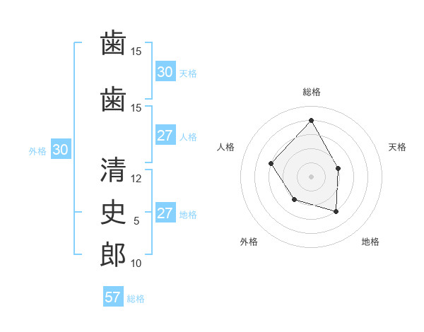 歯歯 清史郎さんの総格は57画の4点!