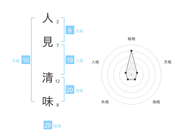 人見 清味さんの総格は29画の4点!
