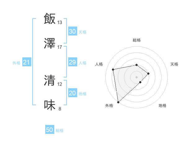 飯澤 清味さんを姓名の画数から五運を鑑定
