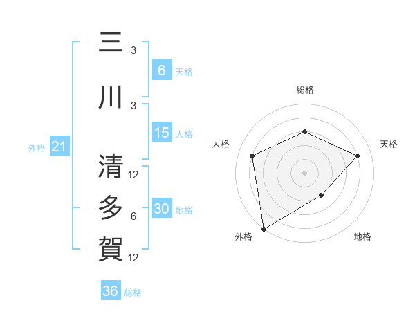 三川 清多賀さんを姓名の画数から五運を鑑定