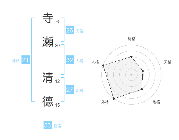 寺瀬 清德さんを姓名の画数から五運を鑑定