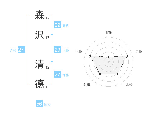 森沢 清德さんの天格は29画の4点!