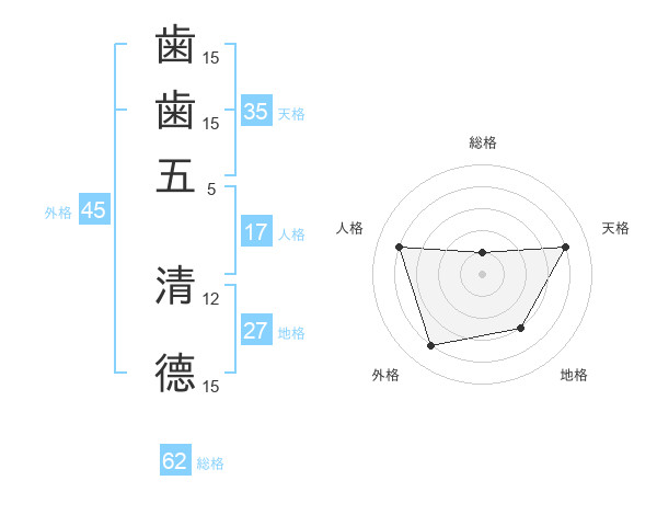 歯歯五 清德さんの外格は45画の4点!