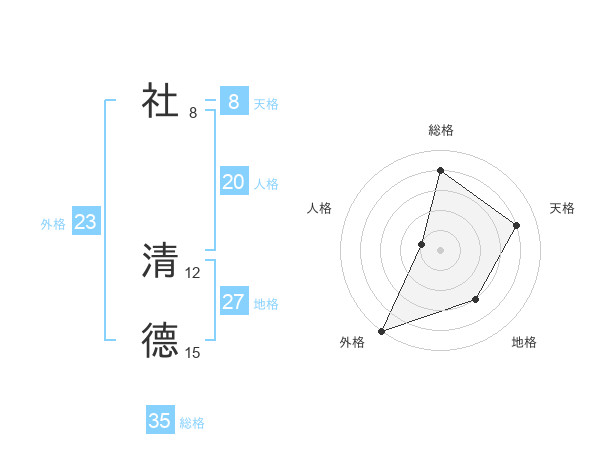 社 清德さんの外格は23画の5点!