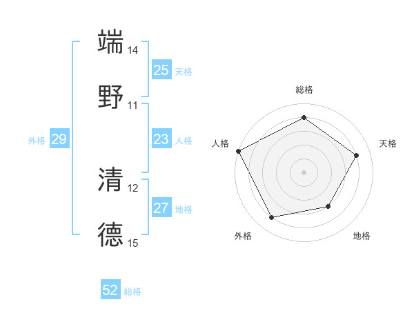 端野 清德さんの総格は52画の4点!