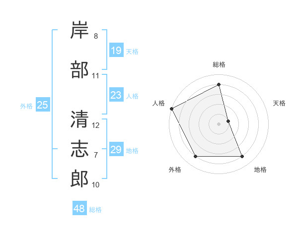 岸部 清志郎さんの総格は48画の4点!
