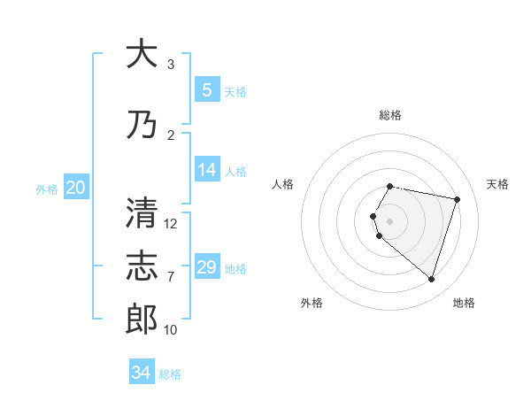 大乃 清志郎さんを姓名の画数から五運を鑑定