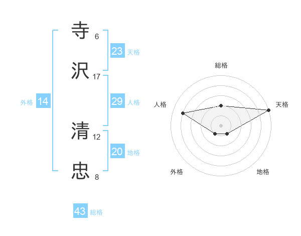 寺沢 清忠さんの天格は23画の5点!