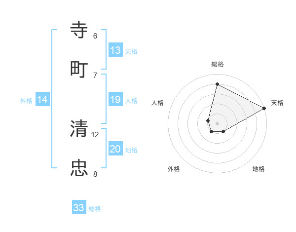 寺町 清忠さんを姓名の画数から五運を鑑定