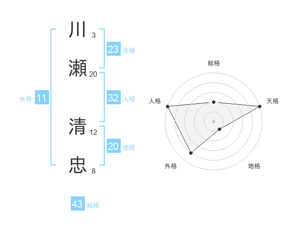 川瀬 清忠さんの天格は23画の5点!