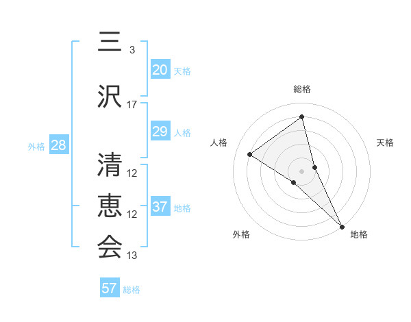 三沢 清恵会さんを姓名の画数から五運を鑑定