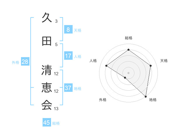 久田 清恵会さんを姓名の画数から五運を鑑定