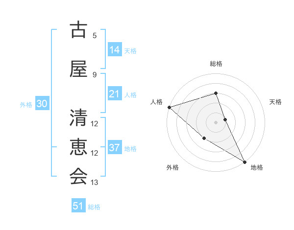 古屋 清恵会さんの総格は51画の3点!