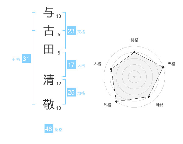 与古田 清敬さんを姓名の画数から五運を鑑定