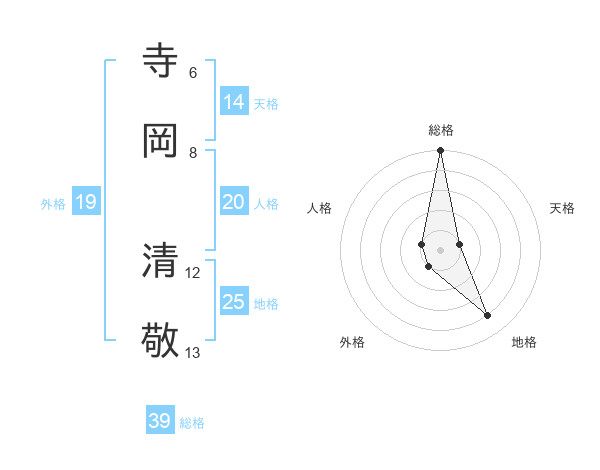 寺岡 清敬さんの総格は39画の5点!