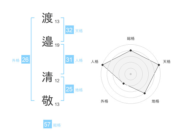 渡邉 清敬さんを姓名の画数から五運を鑑定