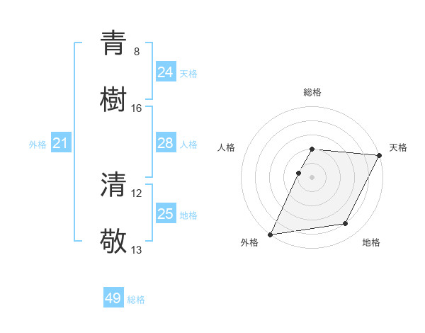 青樹 清敬さんを姓名の画数から五運を鑑定