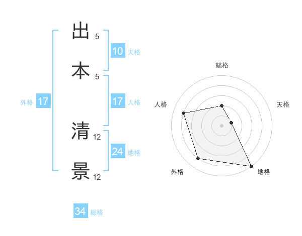 出本 清景さんの外格は17画の4点!