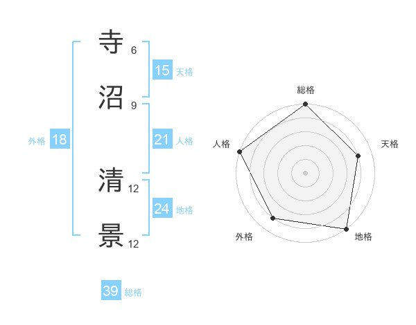 寺沼 清景さんの総格は39画の5点!