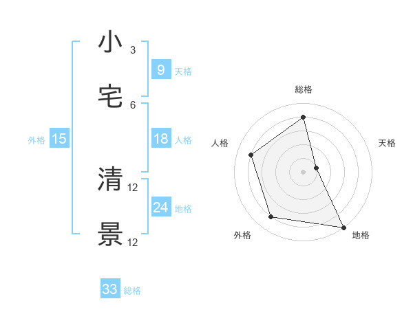 小宅 清景さんの総格は33画の4点!