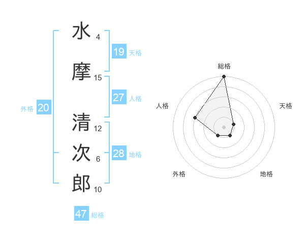 水摩 清次郎さんを姓名の画数から五運を鑑定