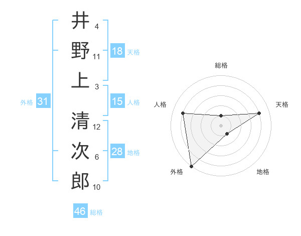 井野上 清次郎さんを姓名の画数から五運を鑑定