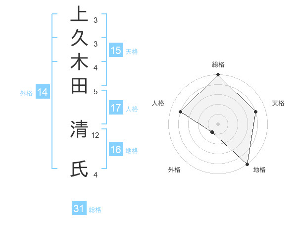 上久木田 清氏さんを姓名の画数から五運を鑑定