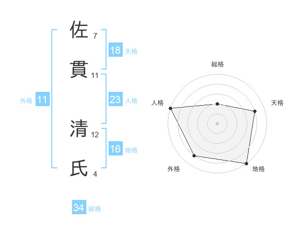 佐貫 清氏さんの総格は34画の2点!