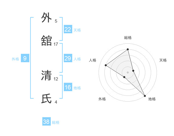 外舘 清氏さんを姓名の画数から五運を鑑定