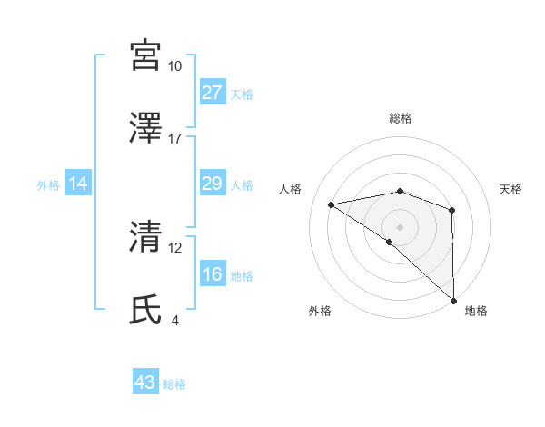 宮澤 清氏さんを姓名の画数から五運を鑑定