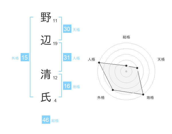 野辺 清氏さんを姓名の画数から五運を鑑定