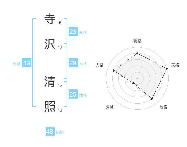 寺沢 清照さんを姓名の画数から五運を鑑定