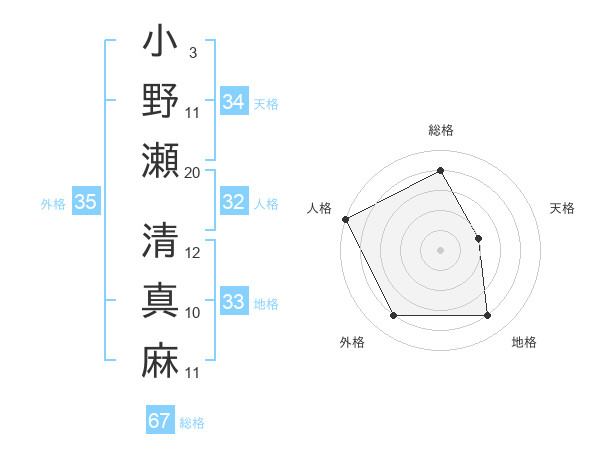 小野瀬 清真麻さんの外格は35画の4点!
