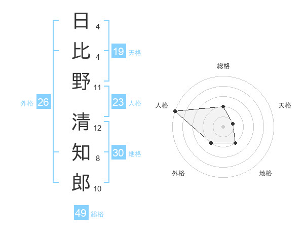 日比野 清知郎さんを姓名の画数から五運を鑑定