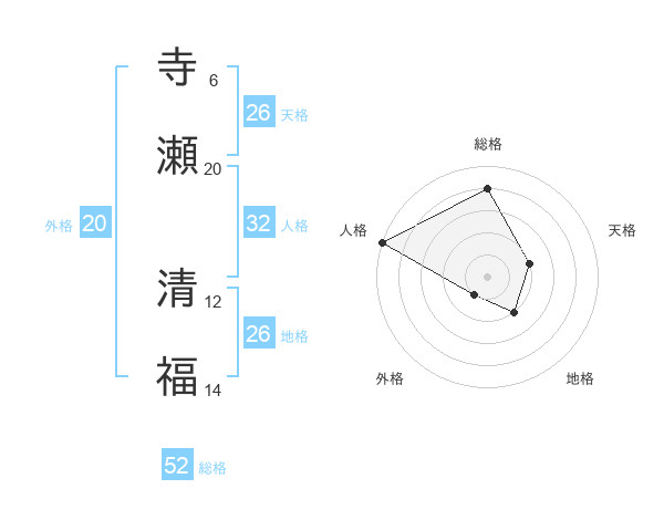 寺瀬 清福さんの総格は52画の4点!