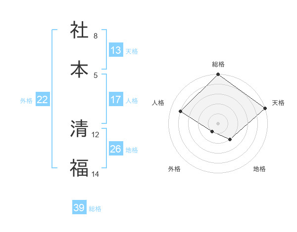 社本 清福さんの総格は39画の5点!