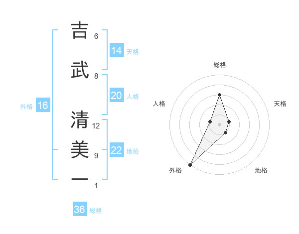 吉武 清美ーさんを姓名の画数から五運を鑑定