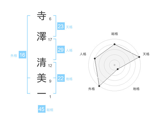 寺澤 清美ーさんを姓名の画数から五運を鑑定