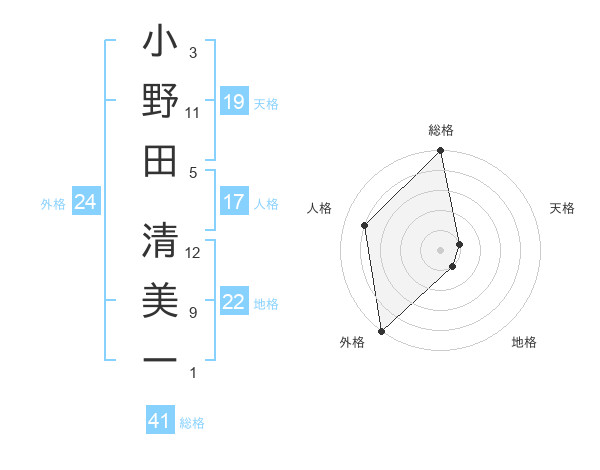 小野田 清美ーさんを姓名の画数から五運を鑑定