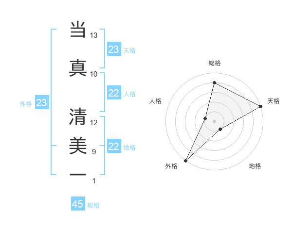 当真 清美ーさんを姓名の画数から五運を鑑定